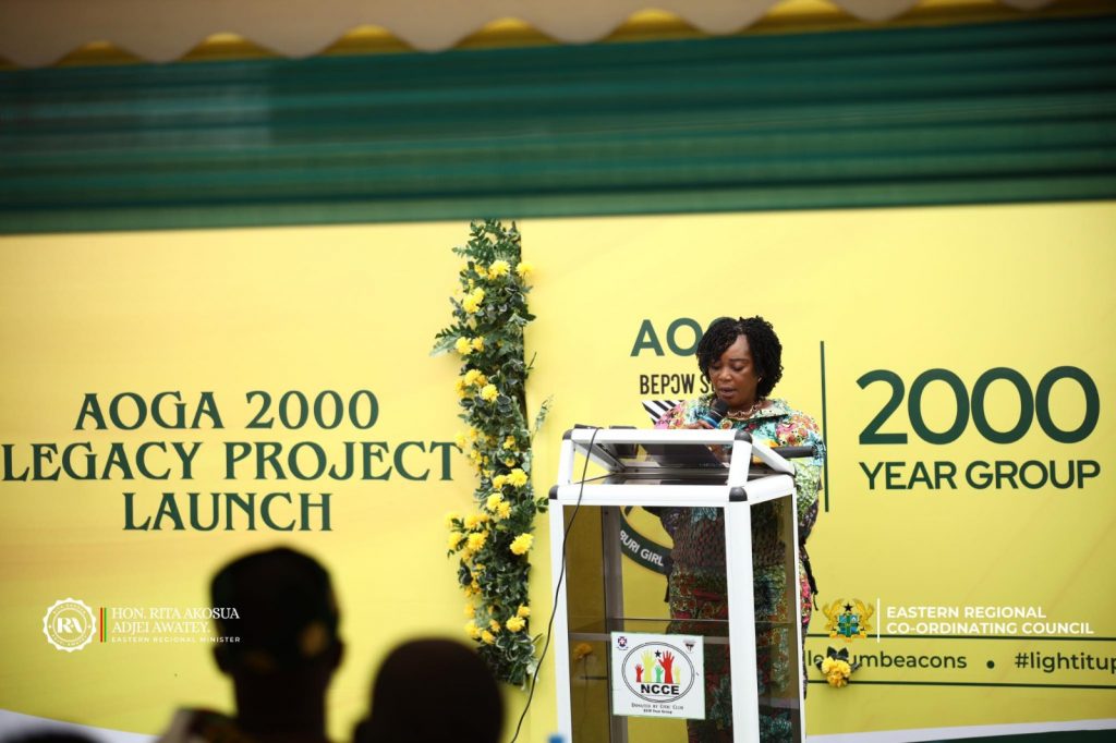 The Eastern Regional Minister, Mrs. Rita Akosua Adjei Awatey, has officially broken ground for the renovation of the Aburi Girls’ deteriorated tower and the beautification of the Administration Block. The event, held on Friday, 21st March 2025, coincided with the launch of the Aburi Old Girls Association (AOGA) 2000 Legacy Project.