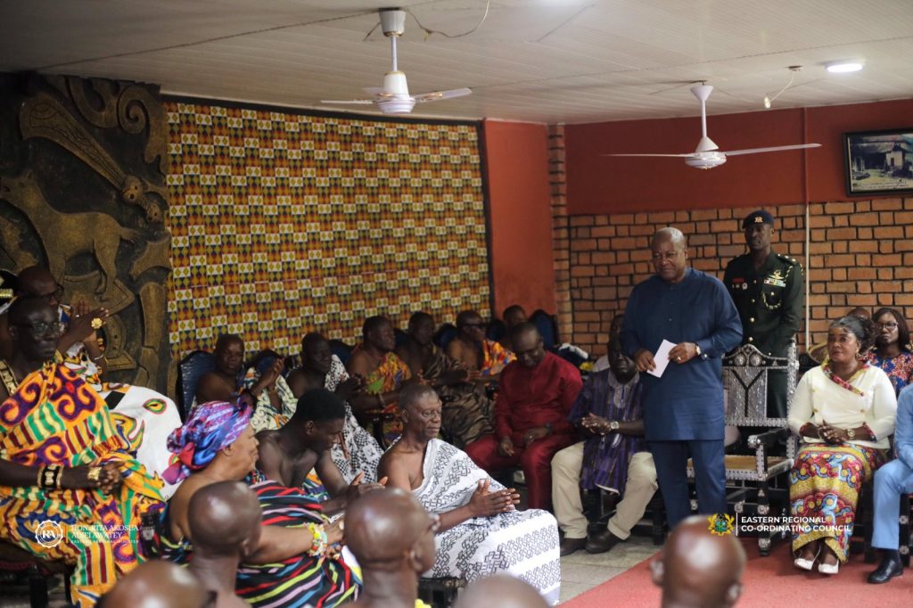 President Mahama assured the Chief and people of Obomeng that his government would prioritize infrastructure projects such as the Nkawkaw-Obomeng road to stimulate regional development and improve the business environment.