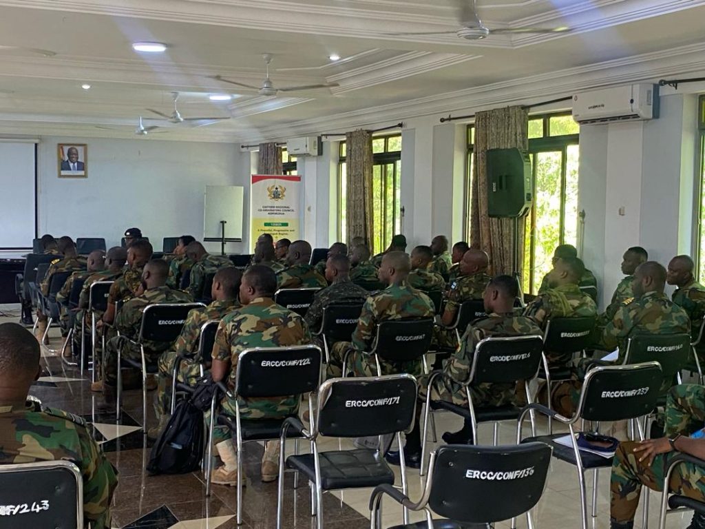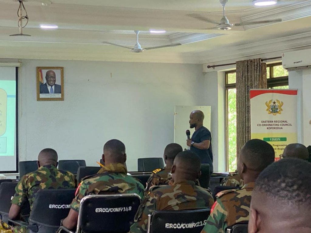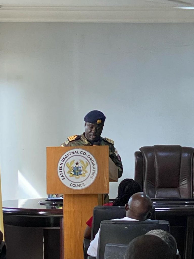 The students of the Ghana Armed Command and Staff College (Junior Division) visited the Eastern Regional Minister, Hon. Seth Kwame Acheampong, Heads of Decentralized/ Unit and Representatives of the Environmental Protection Agency on Monday, March 18th 2024, to brief them on the topical areas of their research study in the Region. The study focused on Chieftaincy disputes, illegal mining and tourism.