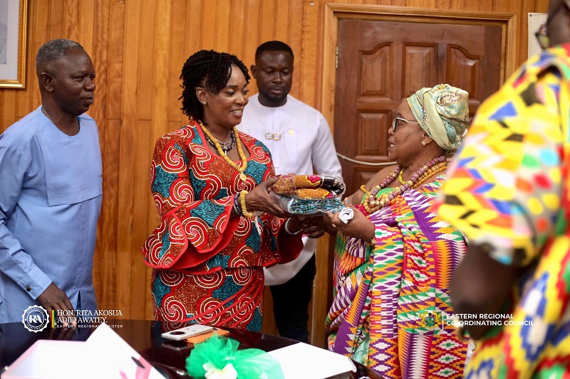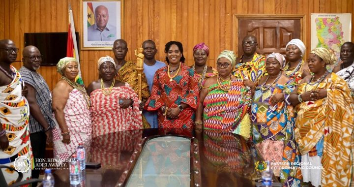 A delegation from the Yilo Krobo Traditional Area has paid a courtesy call on the Eastern Regional Minister, Mrs. Rita Akosua Adjei Awatey, at her office in Koforidua on Tuesday, 25th March 2025.