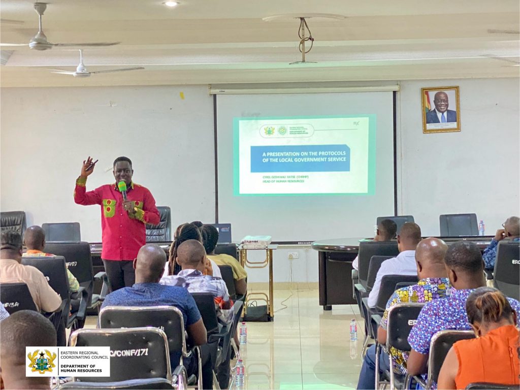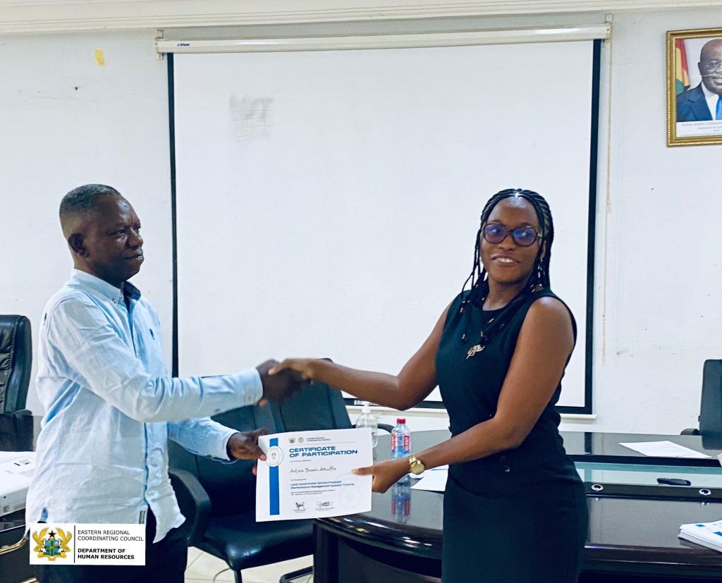 On October 1st, 2024, the Eastern Regional Coordinating Council (ERCC) in collaboration with the Ghana Secondary Cities Capacity Support Programme, organized a comprehensive one-day training on Local Government Service Protocols and Performance Management System (PMS) at the ERCC Conference Hall in Koforidua. The training aimed at enhancing the capacity of staff across various departments to improve service delivery and streamline performance evaluations.